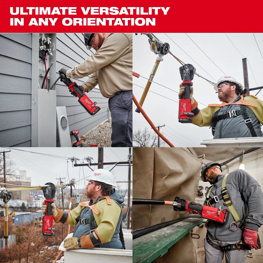 Our M18™ FORCE LOGIC™ 11T Dieless Latched Linear Utility Crimper is the easiest way to crimp utility connectors. This battery-powered crimper tool produces connections that meet ANSI C119.4 from #4 -556MCM AAC/ACSR, and UL486A-B from #4 – 1000 MCM Cu/Al, connection integrity standards on several leading brands of utility connectors. The inline design and centered, balanced grip allow use with one hand in multiple orientations. An enlarged trigger and electronic release button enable both left and right-handed users to easily activate the tool while wearing Class 3 gloves without changing hand position. The head of the crimper rotates 340°, and the quick-release and push-to-close style latch pin is easily opened or secured with just one touch. Predictive Force Monitoring (PFM™) constantly measures output force to deliver the fastest crimp speeds and ensures full pressure is reached every time. A pre-crimp battery check ensures that the battery has enough charge to complete a full crimp. Equipped with fully enclosed high-speed hydraulics, a POWERSTATE™ Brushless Motor, REDLINK™ Electronics, and REDLITHIUM™ Batteries, the tool provides unmatched reliability in the toughest conditions. Integrated with MILWAUKEE® ONE KEY™ Technology, the crimper stores real-time crimp data, which is used to view historical performance data, sync data to the cloud for easy access, and build professional reports on the back end.