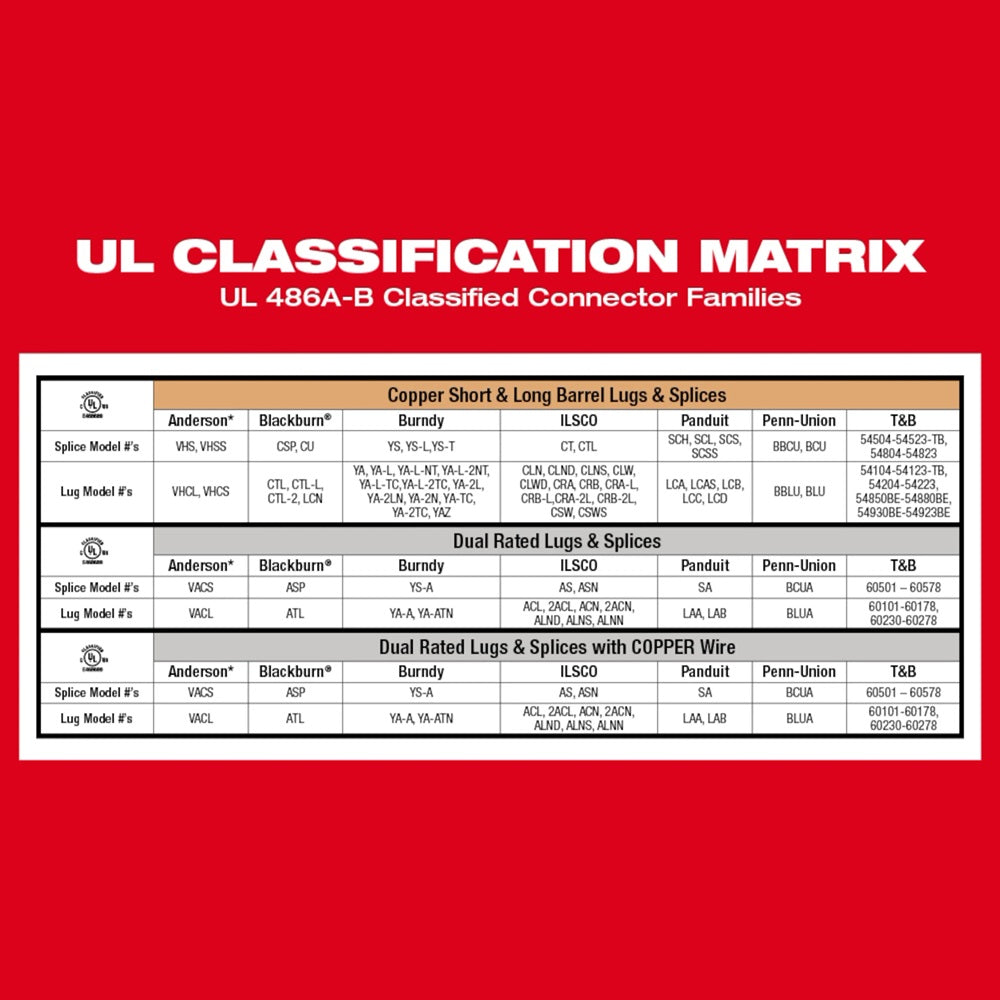 Produces UL 486a-b Classified Connections for #6 AWG to 750 MCM Cu & Dual Rated Connectors across all leading connector manufacturers